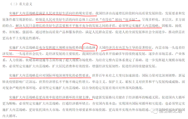本部分内容非常关键,总共只有四段,但是分层次高度概括了我国实施“扩大内需战略”的意义c / 7,其中第一段主要是阐述了扩大内需符合人民群众对美好生活的向往,而且本段也有“共同富裕”的含义,从“有没有”到“好不好”。
