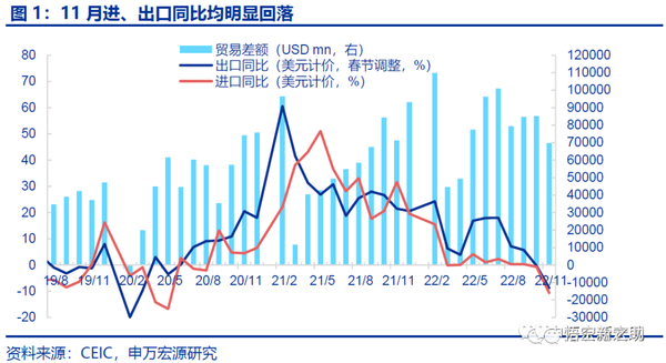 到现在,一方面面临全球消费收缩压力,另一方面他国产业产能开始恢复(PS:甚至产业链重构加t ` 7 A r速,比如传得沸沸a q P , k * $ , 3扬扬苹果产业链外移),接下来我国外贸压力会比较大,比如11月份我国出口(美元v @ A 0 & +计价)同比大幅下行8.4个百分点至-8.7%。