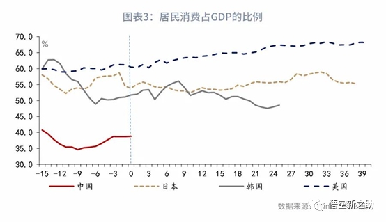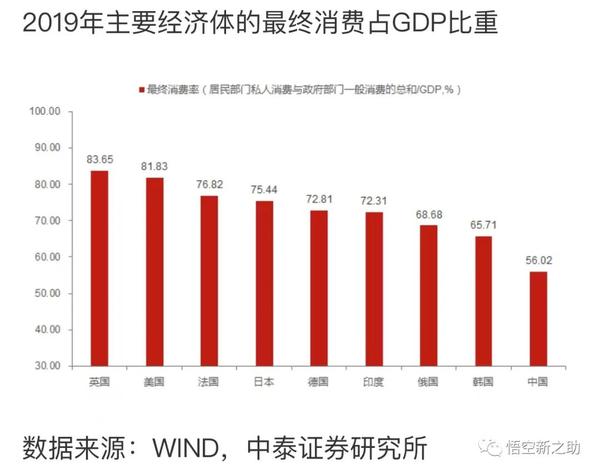 数据显示,消费3 / m } T z当人均GDP突破1万美元时(PS:我国是2019年突破1万美元大关),美国居民消费占GDP的比例达到60.5%,日本和韩国这一比例低于美国,但也分别达到53.9E Q [%和51.8%的水平;而2019年中国居民消费占GDP的比例仅为38.8%。