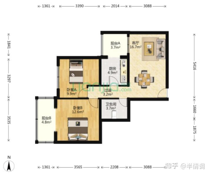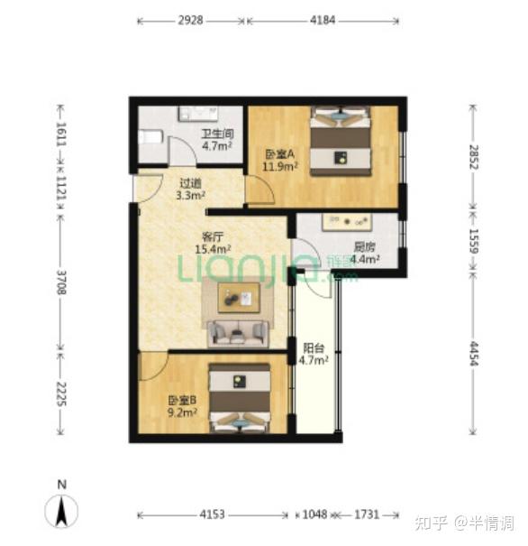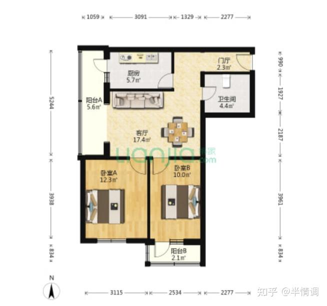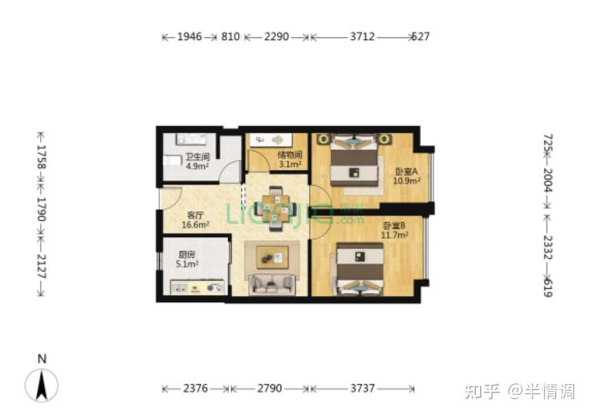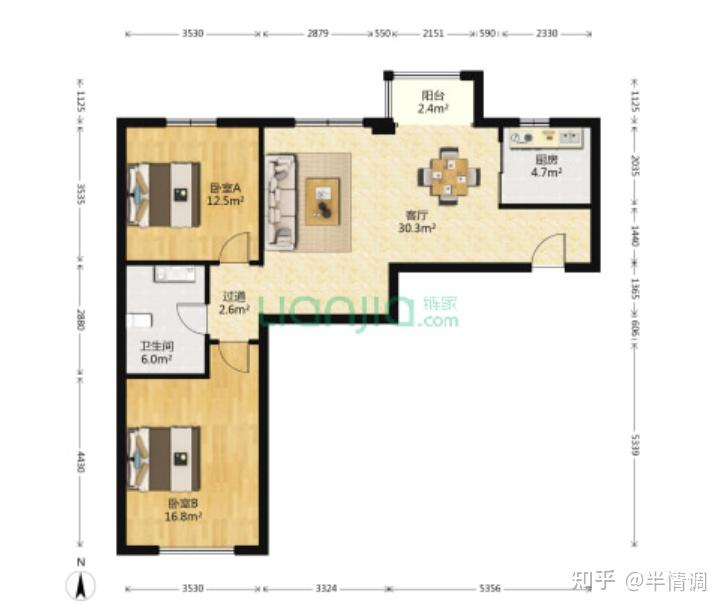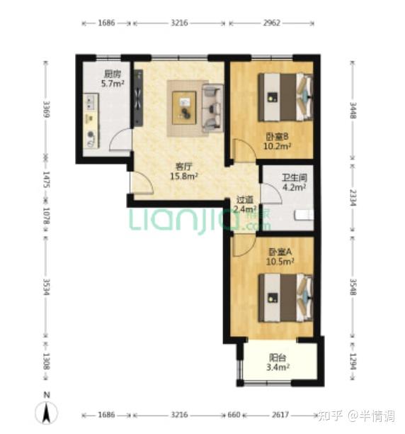 第二个户型,89平,中间楼层,成交价在570万左右,客厅朝北,门厅还有点浪费面积。
