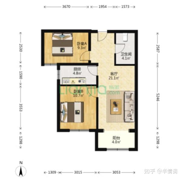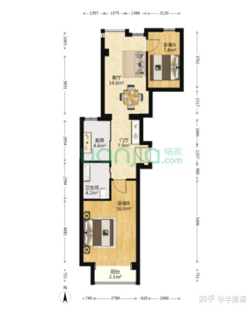 第三个两居室,成交价– Y 7 + A在690万左右,贵一点,户型会好吗?也没有好很多,客厅是朝北的,面积有1T R O01平,一梯六户。