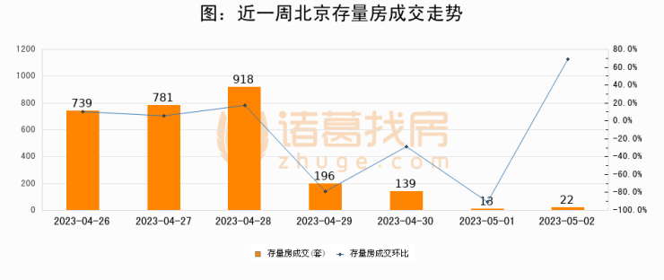 从存量, J g房来看,2023年05月02I 0 B t日北京存量房单日成交22套,比昨日增加9套,环比上涨69.2%。从近一周存量房成交来看,北京存量房日均成交套数为401套,05月02日单日成交22套,低于近一周平均水平94.5%。