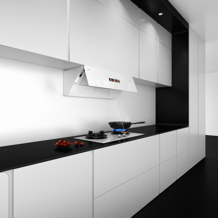 方太F1新月油烟机深研新时代女性的精神层次,借月相灵感,以黑灰白为主色调,将拒绝标签化的洒脱与缱绻柔情的浪漫勾勒在一弯新月中,与整个家相1 ! – } Q [ 3得益彰。
