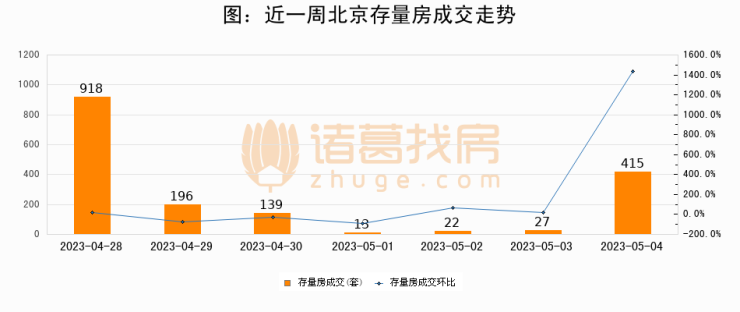 从存量房来看,2023年05月04日北京存量房单日成交415套,比昨日增加388套,环比上涨1437%。从近一周存量房成交来看,北京存量房日均成交套数为247套,05s z x 5 v g月04日单日成交415套,高于近一周平均水平. m c i68%。