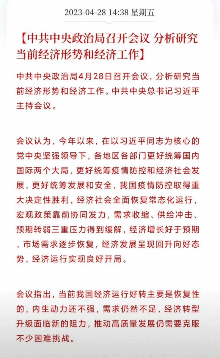 在4月28号经济会议的表述中,咱也能看出个一二。