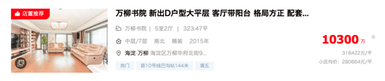 值得一提的是,万柳书院极少有二手房源放出,多家二手中介平台也无此业务。据记者梳理,截至目前中原地产有5套万柳书院房源在售,挂牌均价约28万元/平方米。价格最高的一套323平方米的5室2厅户型,报31.8万元/平4 } Z | , z \ ,方米,总价1.03亿元。