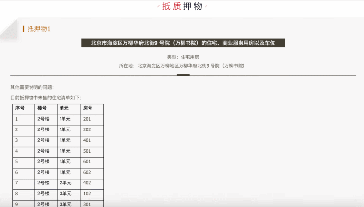 5月7日,京东拍卖网站挂出了一则“北京赫华恒瑞房地产开发有限公司不良债权转让项目”推介信息,中国信达北京分公司对47: V P D Y J 1 b `亿不良债权进行转让,对应的抵押物中便包括万柳书院75套住宅。截至发稿,这则公告引来1万+次围观以及吸引了30名意向人。是目前中国信达所有招商债权中关注度最高的一个。