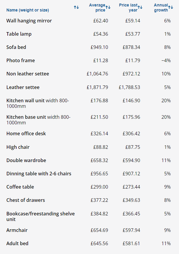 英国国家统计局(ONS)最近针对英国家具产品的涨价情况做了一个统计,最新数据显示:与去年相比,成人床、双人衣柜和厨房家具的价格涨幅最高。