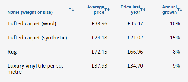 最后,簇绒地毯、地毯和地板瓷砖的整体价格上涨了10%,达到173.22英镑,涨幅为15.07英镑。