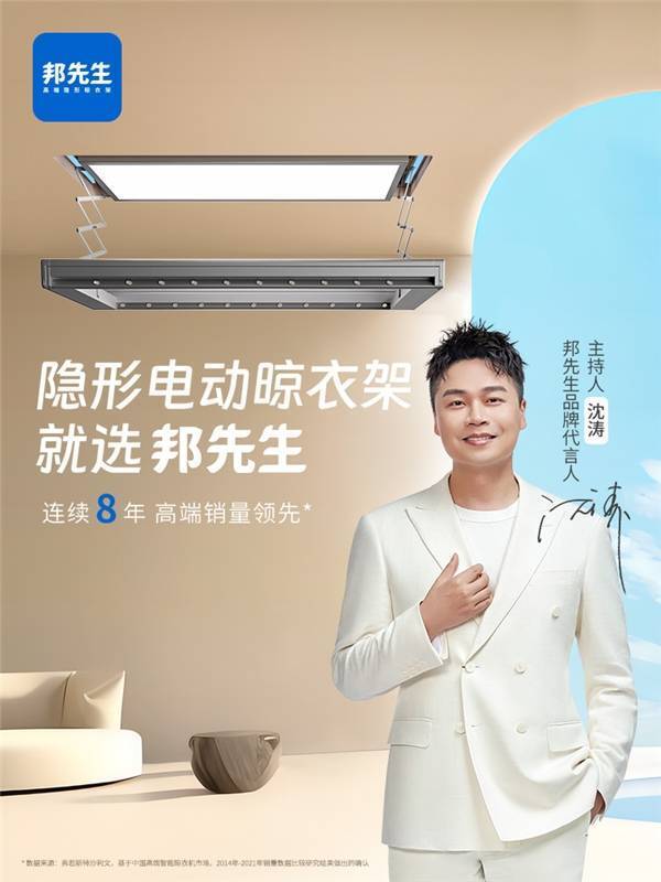 5月11日,高端隐形晾衣架领导品牌邦先生正式宣布,浙江卫视知名主持人沈涛为品牌代言人,以更高标准的晾晒,共同迎接智能晾晒大时代,用科技力量创造美好智慧家居生活。
