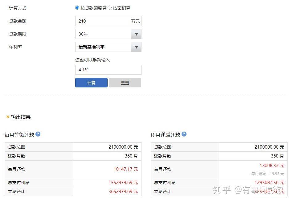 那么@ ) 0 b你看一下,以210万的贷款来算,两个一个是453万,一个是365万,差距达到了88万。U S 0 ~ d