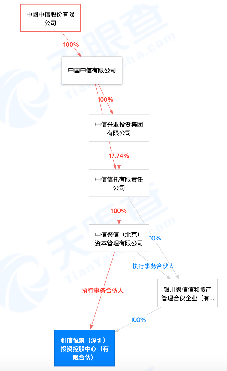 从股权结构来看,该公司由银川聚信信和资产管理合伙企业(有限合伙)100%持股,而后者由中信信托有限责任公司100%持股,中信信托有限责任公司由中国中信有限公司和中信兴业投资集团有限公司分别持股c A i82.26%和17.74%。! & a r s f 3 V |