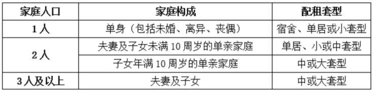申请家庭按照下表中载明的登记标准,只可选择一种套型进行登记,且选7 ) j D定后不能更改。