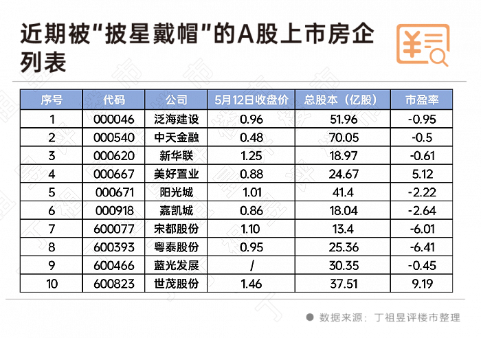 到目前为止,有10家A股上市房企被“戴帽”。除很可能成为A股首家退市房企的*ST蓝光外,还有嘉凯城x = s、泛海控股、新华联、美好置业、阳光城、宋都股份、世茂股份、粤泰股份等。
