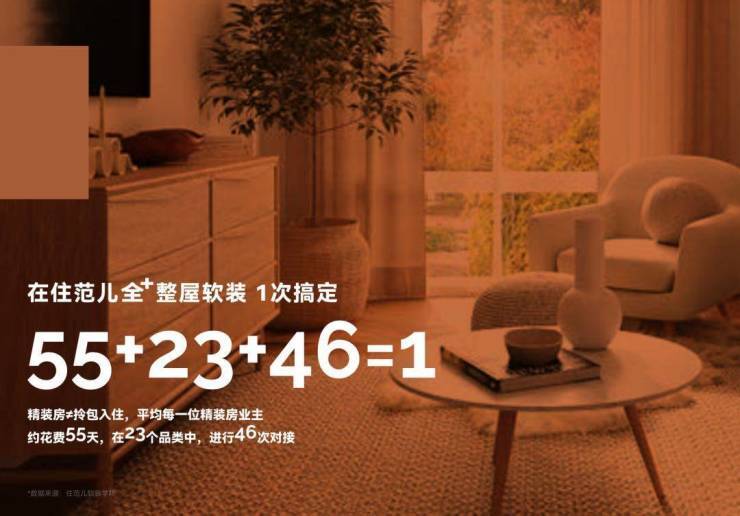 “2023年北京交房的精装小区数量远超毛坯房5 \ D,今年就有10万套精装房即将交房,这个群体有大量的一站式需求。针对精装房的微局部改造,包括插座、吊顶、护栏的调整,一般会产生一两万的施工费,再加I O 5 # f A & O上各类建材产品包括阳台、美缝、智能卫浴,还有定制家具、软体家具、{ v w B D T t y q家电等等,可以做到十三、四万的客单值,少的话也有六至八万。这部分客户是典型的以产品零售带动的一站式零售模式,也就H S 8 x ! 4是以前所说的拎包入住”,住范儿CEO刘羡然介绍说! d = _ ? g。