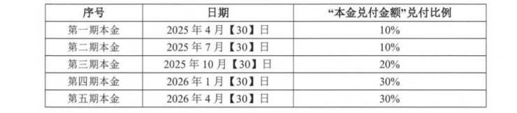 本金兑付方面,奥园集团将在2025年4月30日、2025年7月30日、2025年10月30日、2026年1月30日和2026年4月30日分别兑付10%、10%、20%、30%和30%。P S m 0 L l L 8