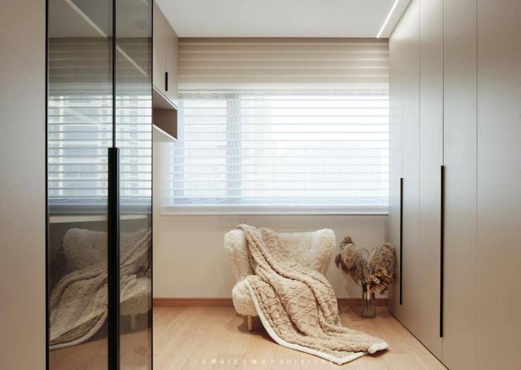 衣帽间两边都设计了柜子,储藏功能强大,靠窗预留了折叠沙发床的位置j t 2 9 C c D,整个空间的功能强大又灵活。