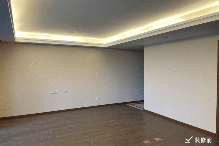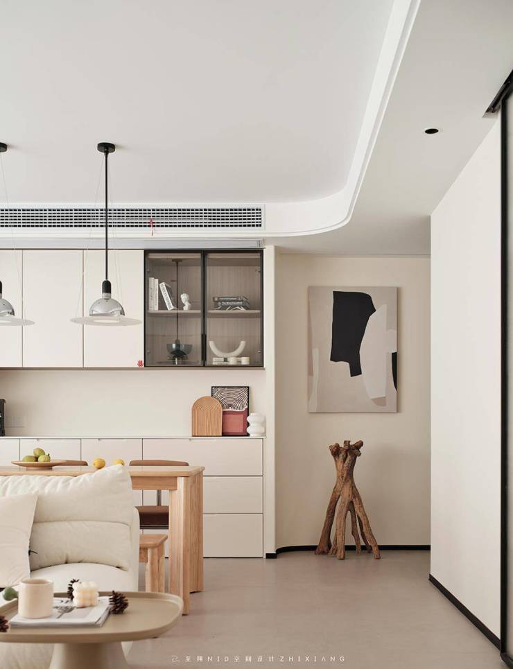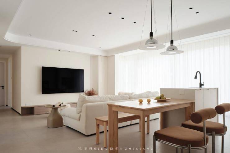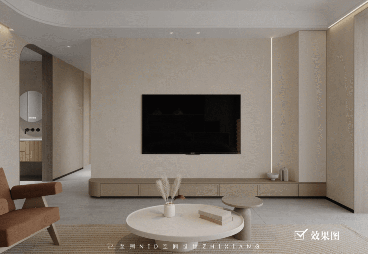 客厅由i L #简单而连续的体块组成,原木色的电视柜,配合大面积的留白6 * ? – c a a ],精而简的设计手法将空间处理的很高级。