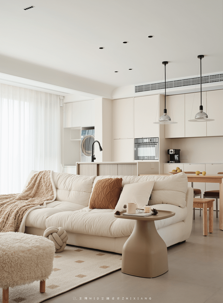 一推开家门,就仿佛来到了城市以外,家是惬意的= W t D #静谧小屋,收下你所有的疲惫……在“温柔”这个调性,找到纯粹,去充实它,丰富它。