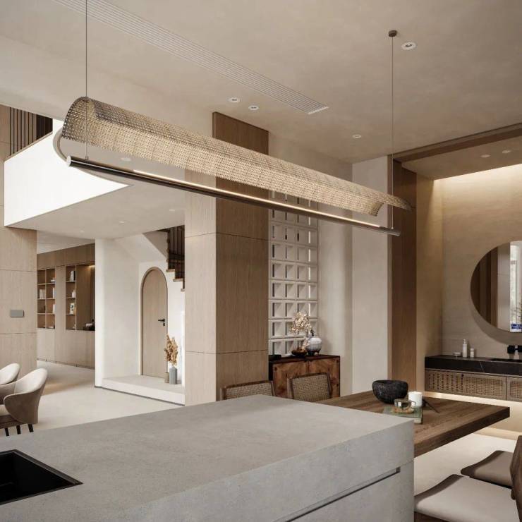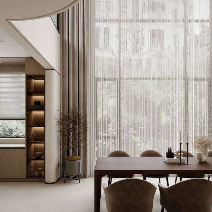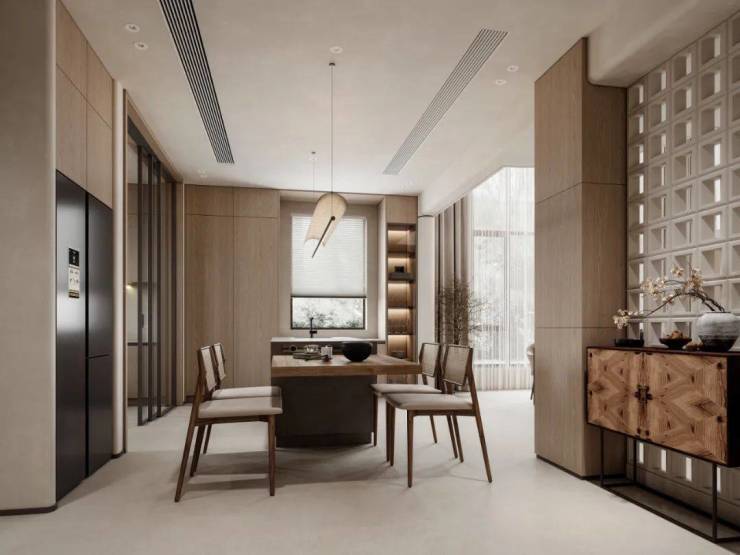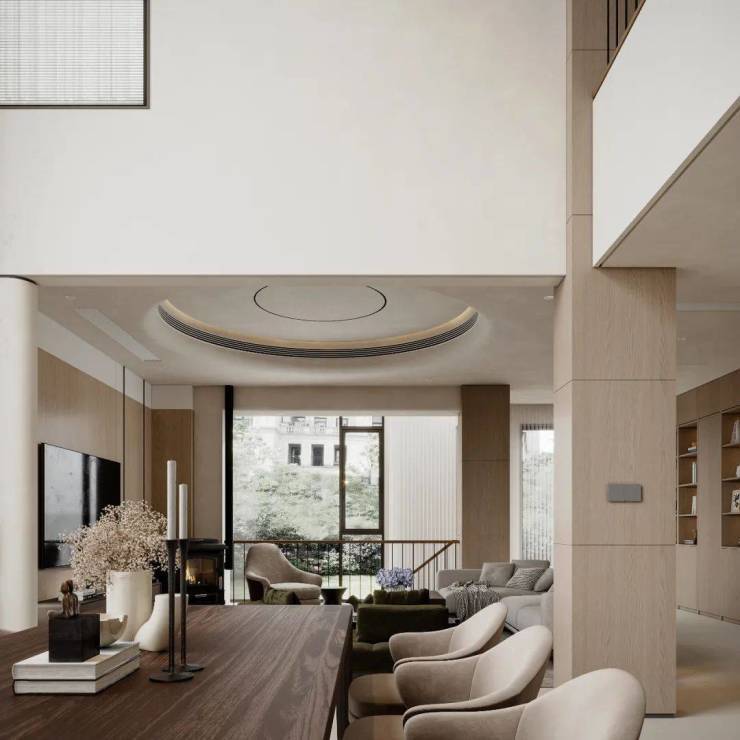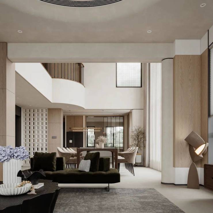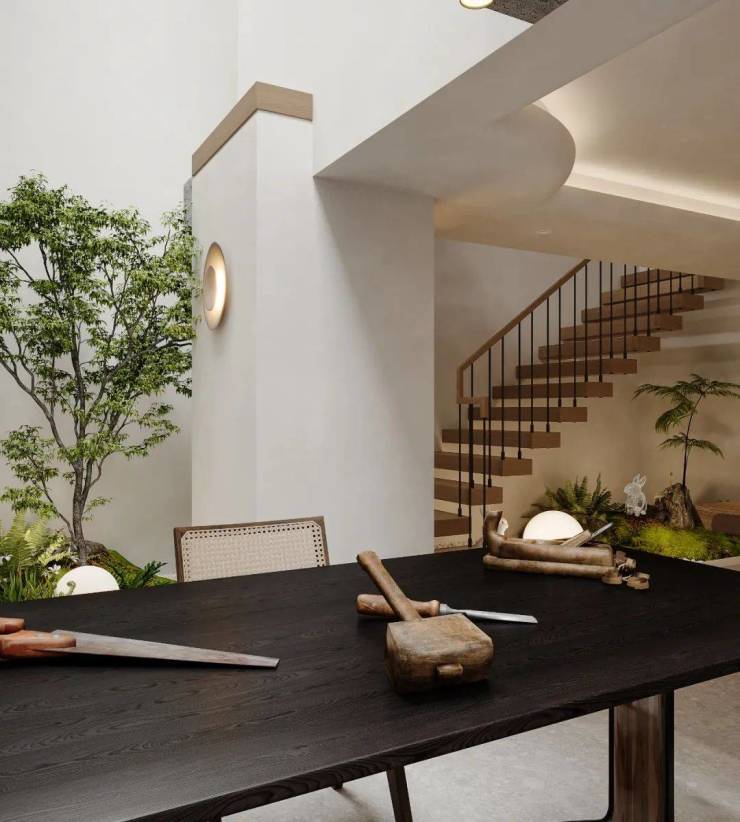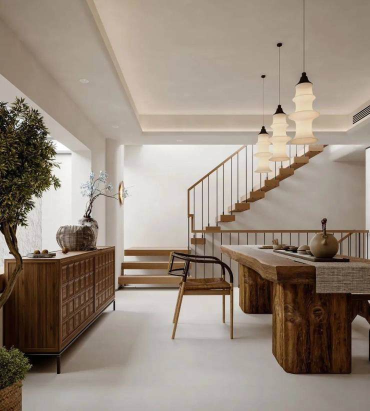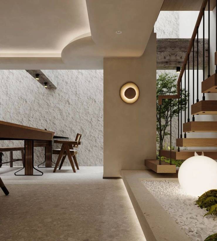 本案是一套500㎡别墅,设计师结合场K 2 & d地位H 2 \ l 7 A c置与居者喜好的仔细考量,将现代+新中式+日式+东南亚+诧寂等多元化美学思想融会贯通,最大限度引入自然光,有机的构建成以静制动、古朴自然的一种空间美学系统,实现大自然、空间与人的对话。