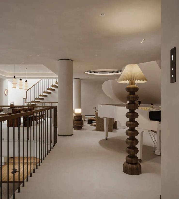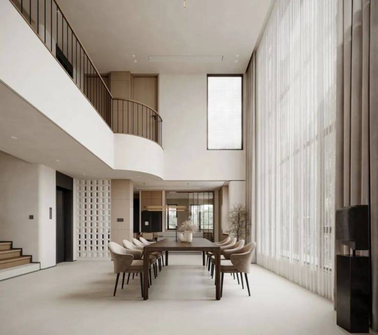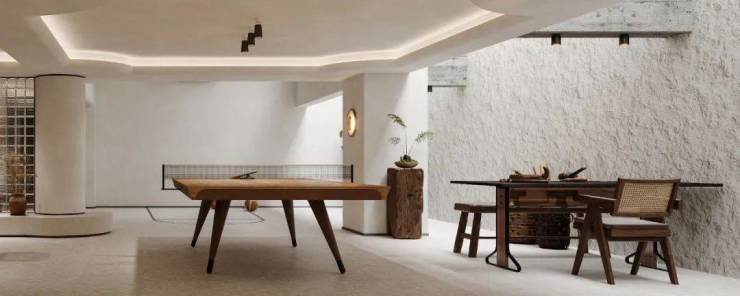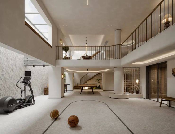 地下空间是居住者的休闲娱乐区,夹层挑空的布局让空间价值最大化,没有阻挡和隔断,自然静寂的气韵自由穿梭,释放美i U 7 } j j # 1感与层次。尤其是采光井和楼梯的搭配,一度成为了该小区“网红打卡地”。