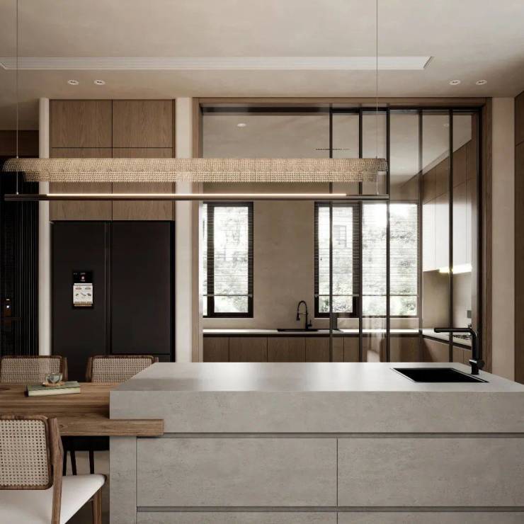 按照居住者的生活习惯,设计师特别将西厨的岛台延伸出一个小餐桌,便于两三个人用餐。
