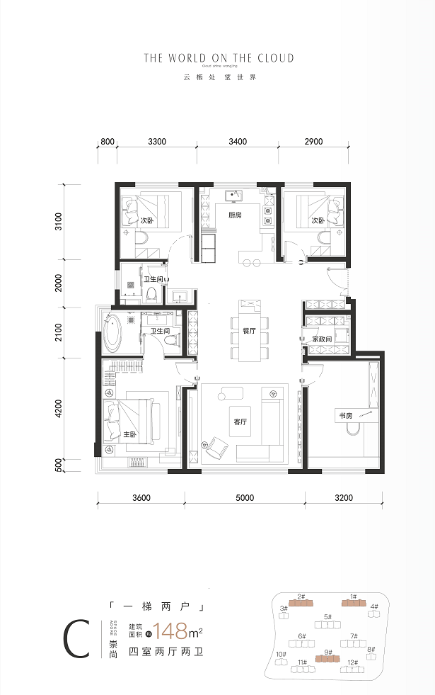 买148平四居,总价大约需要1258万起。