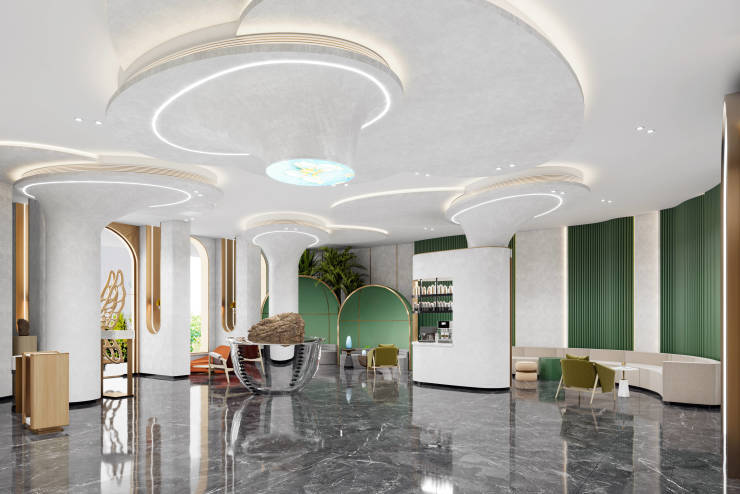 酒店的大堂,方整高大、简洁明快。中央一座飞行的雕塑点明主题,总台让碧空降下,群鸟随乐起舞,大堂吧内,蛱蝶似乎已经在王褒的音乐里忘了时间,让今人9 [ !可以与古乐对话,康体简洁活力,会议庄严大气,宴会高级时尚,茶坛书香意气,及至客房,设计的温度,在空间在游弋,床靠背上,苌弘的意涵天地造化,可见万物3 f $ z和合的导视,让中国的礼仪] N O 5 w \ ] T %之邦| x g K ( p ^ 6延续千年,也经久不衰。欢迎大A p x | Y &家来此了解资阳这座