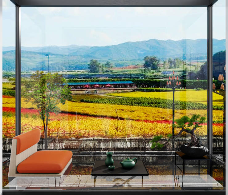 外观的彩色玻璃栏杆,呼应着对面万亩花海,走进酒店,一朵白色的百合花迎面绽开,在~ L ` \ 1 ^百合花内,在三生石旁,百年好合,万事如意,则自然天成。时尚的就餐区,摇身一变的清酒吧,红花盛开的包房,朝族腰鼓的过道,绿色映着雪花,红色装点雾凇,坐在悬浮的窗上,凌空而起的不仅是肉体,还有我们渴望浪漫的心情x ! a ) R = h Q 8!