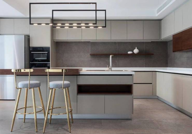 灰色大理石纹,时尚气息十足的黑钢吊灯,任何细节的斟酌都会带来质感的回馈。