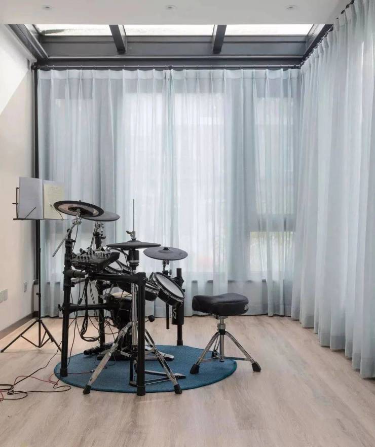 所以在打造这种现代式卧室时,直接用软隔断隔开,办公阅读休息多种功能兼顾。
