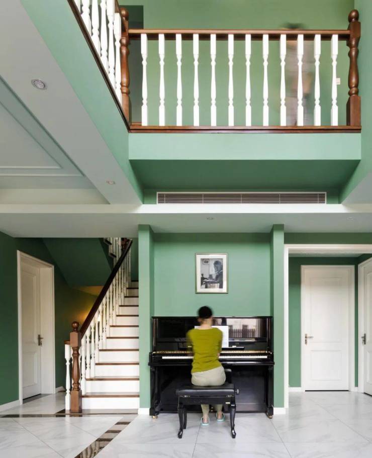 在客厅的一角,设计师还巧妙利用空间,给这架立式钢琴找e E \ $ L J _ i到了最合适的位置,让音乐时时S P x m J k萦绕在屋中。
