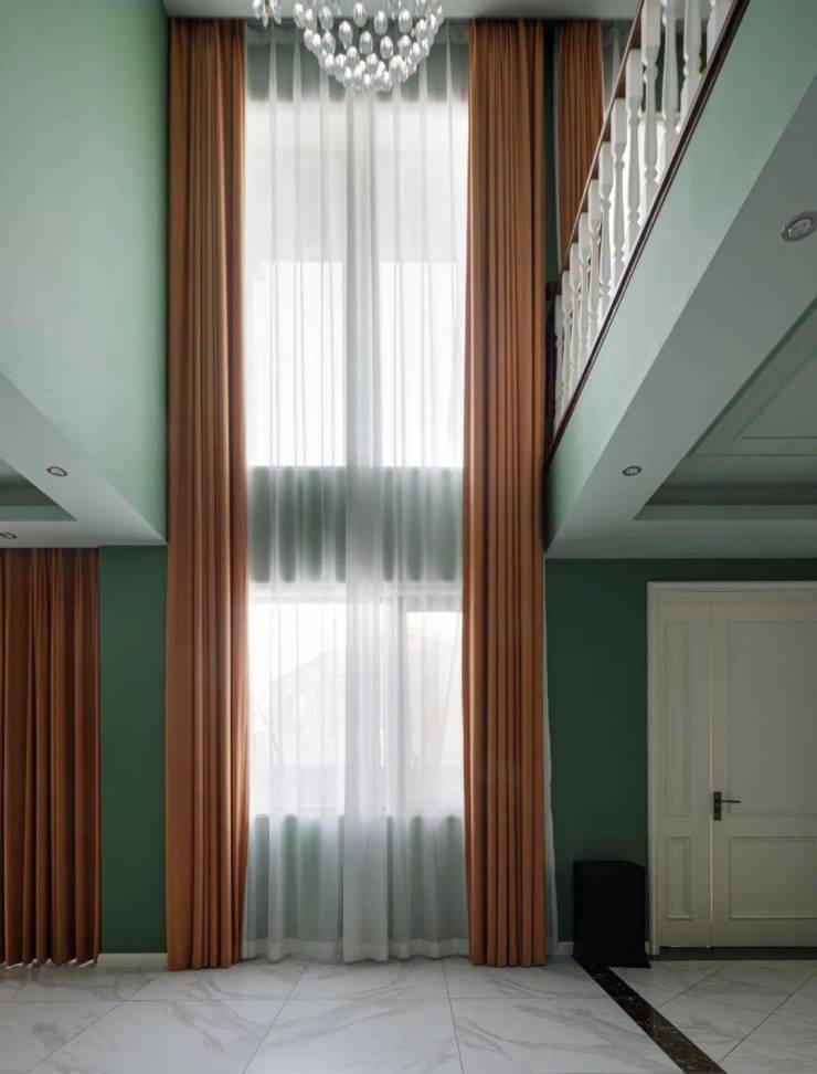 从主入口进入别墅,一面挑空的大玻璃窗就在门旁,给空间带来了充裕的采光和浓厚的休闲意味。