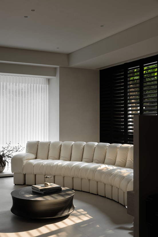 光影透过木百叶窗,交织出空间的舒适与宁静