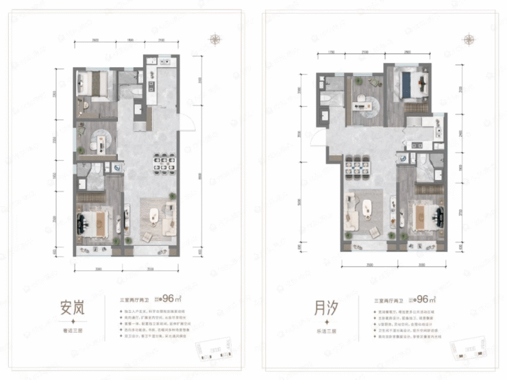 96平米三居,有边户及中间户,约144套,总价约768万起