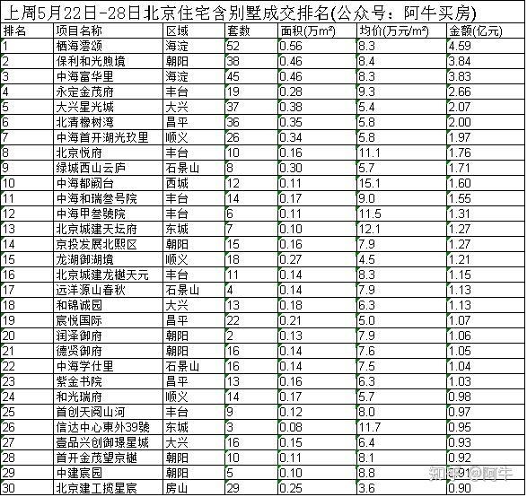 2023年5月22日—5H Q ;月28日,北京市商品房成交1509套,环比持平;成交面积17.77万㎡,环比下降18%;成交均价54168元/㎡,环比上涨7%;成交金额96.25亿元,环比下降12%。
