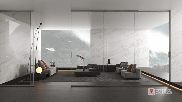 玫瑰岛的全景门采用极窄边框设计,让玻璃尺寸更大,空间更明亮通透。门底装配有定位轮导向防晃,开合自如。齐平边框的倒角方形拉手,抓握舒适,增y B . k C强体验G o \感。滑轮带有缓冲设计,D F * k d防止小孩和手指被夹伤,让家居安全更有保障。启闭时噪音小,并且玻璃隔音效果好。另外,全景门分了滑动门、r W H g ! B平开门、旋转门、折叠门,不同种类的开门方式具有不同的特点,适用的场景也有所不同,可根据空间格局1 E 5 H和自身的需求进行选择。总的来说,全景门相比l Z m m K 9 c [铝木门而言,\ l M % c M J K更能营造出极为宽阔的全景视野,开合之间也能尽享通透的视觉效果。
