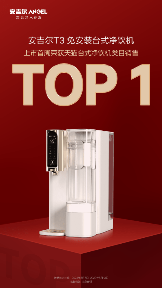 (安吉尔T3 免安装台式净饮机荣获天猫台式净饮机类目销量及销额第一)