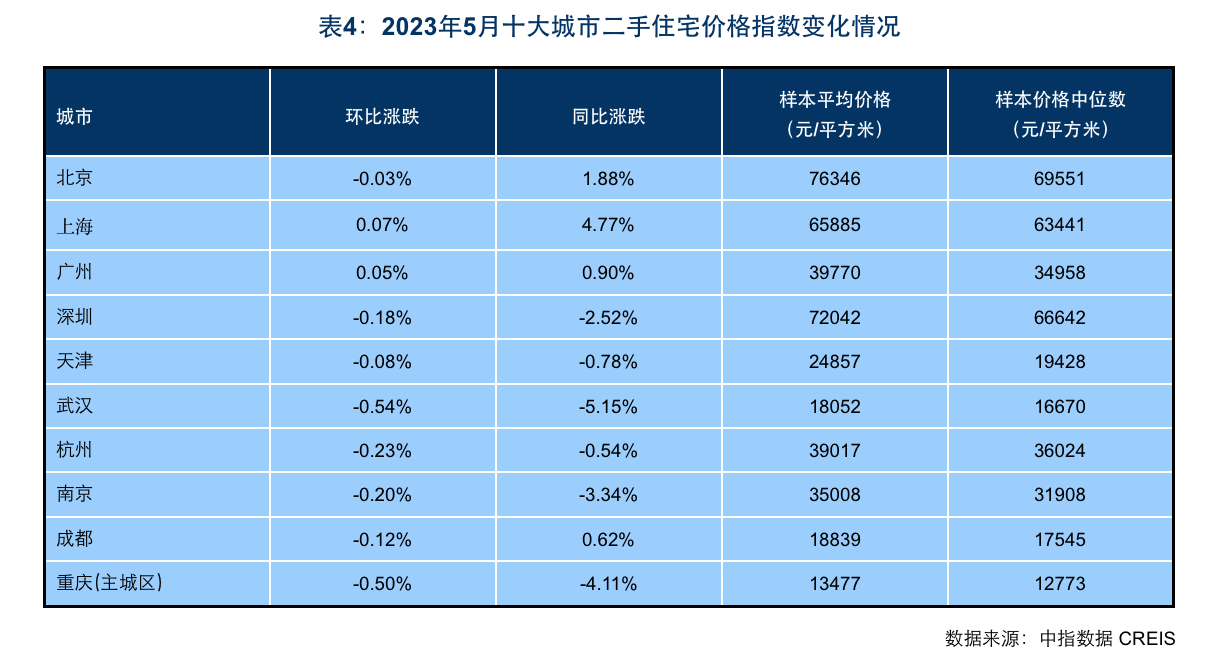 根据《百城Q L Q c 1 k 5 e @价格指数报告》,2023年5月,全国100个城市新建住宅平均价格为16180元/平方米,环比止涨转跌,跌P E # q =幅为0.01%。全国100个城市二手住宅平均价格为15786元/平方米,环比下跌0.25%,跌幅较上月扩大0.11个百分点。