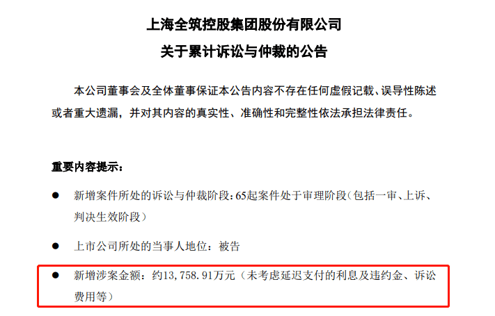 全筑股份新增涉案金Y q c H # ) 2 \ y额约1.38亿元