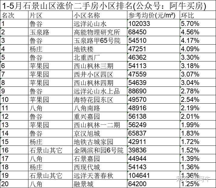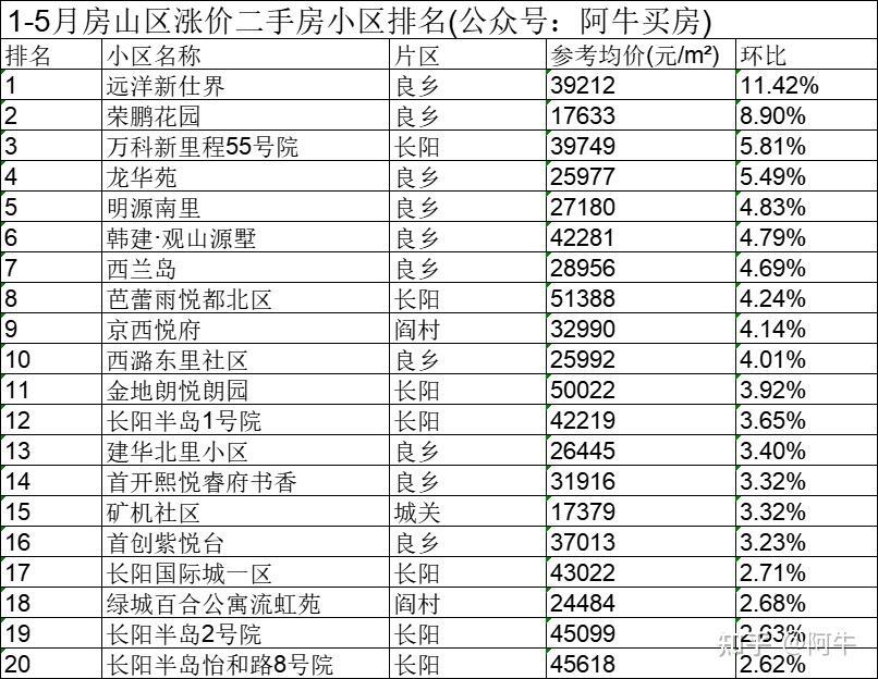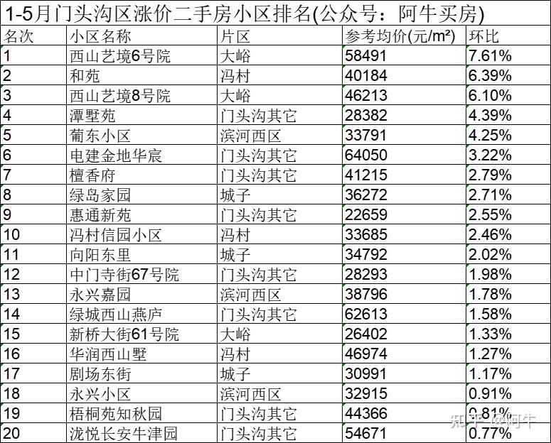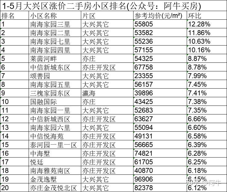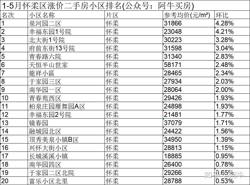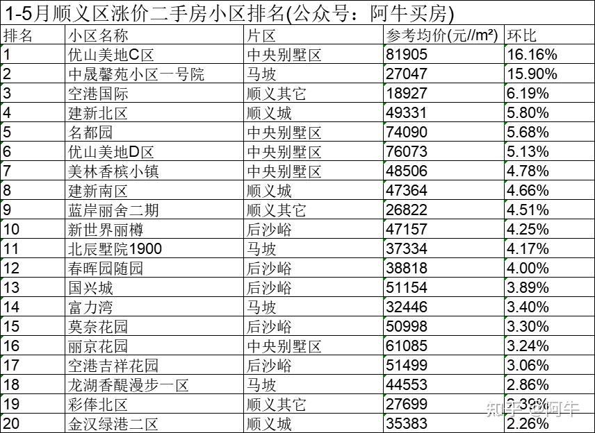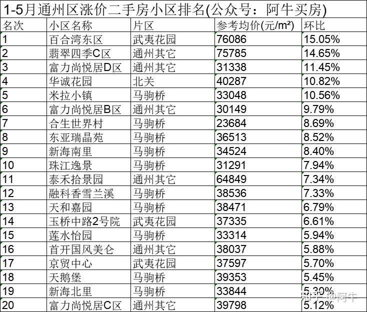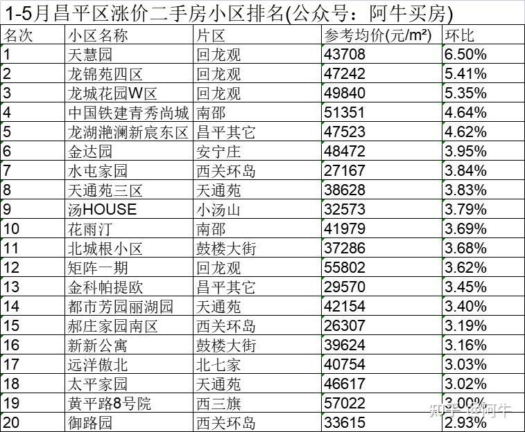 北京1-5月各区涨价的小区排名,供大家买房参考。PS全北京二手房小区历史成交价和最新成交价可以来获取。