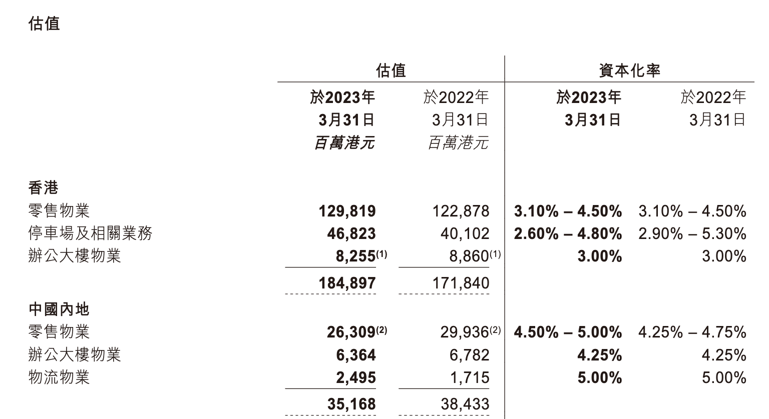 从领展披露的数据来看,其于内地物业的估值约351.68亿港元,比去年减少32.65亿港元,同比减少8.5%,按人民币计算,录得3.7%的降幅。其中,零售物业估值整体同比下降12.1%;办公大楼物业估值整体同比下降6.2%。物流物业估值整体则同比提高45.5%。