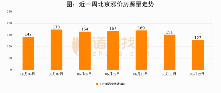 根据诸葛找房数据显示,北京24小时涨价房源量为127套,较06月11日减少24套,环比下降15.9%。与此同时,涨价房源占比小幅回落,对于购房者来说是一个入市窗口期,购房者可抓住时机入市。