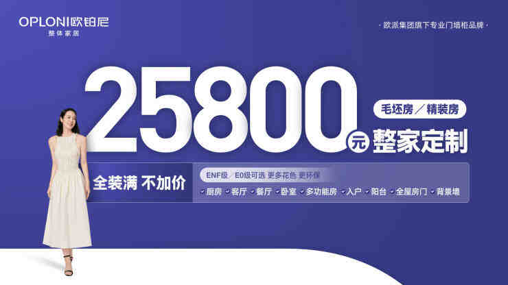 作为整体家居行业的黑马,欧铂尼洞察市场先机,准确把握市场脉搏,通过此次“25800整家定制套餐”,实现门、墙、柜、家具家配一站式全屋配齐的完美融合,是欧铂尼在“大众品牌”新定位下对消费者的惠民让利,让大众感受欧铂尼的专业与品质。