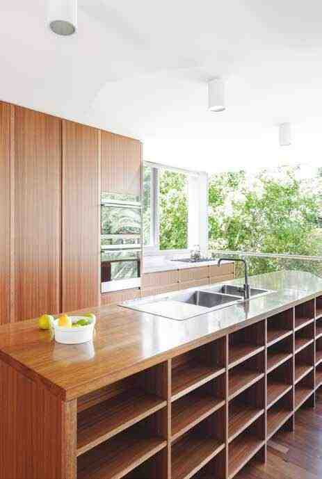 在悉尼北部海滩的悬崖之上,有一处建筑,房屋设计极具特色,从厨房和餐厅可直接通往面朝大海的木质平台,海滩的壮观景致尽收眼底。如何在欣赏室外美妙景色的的同时,也保证厨房风景独好?