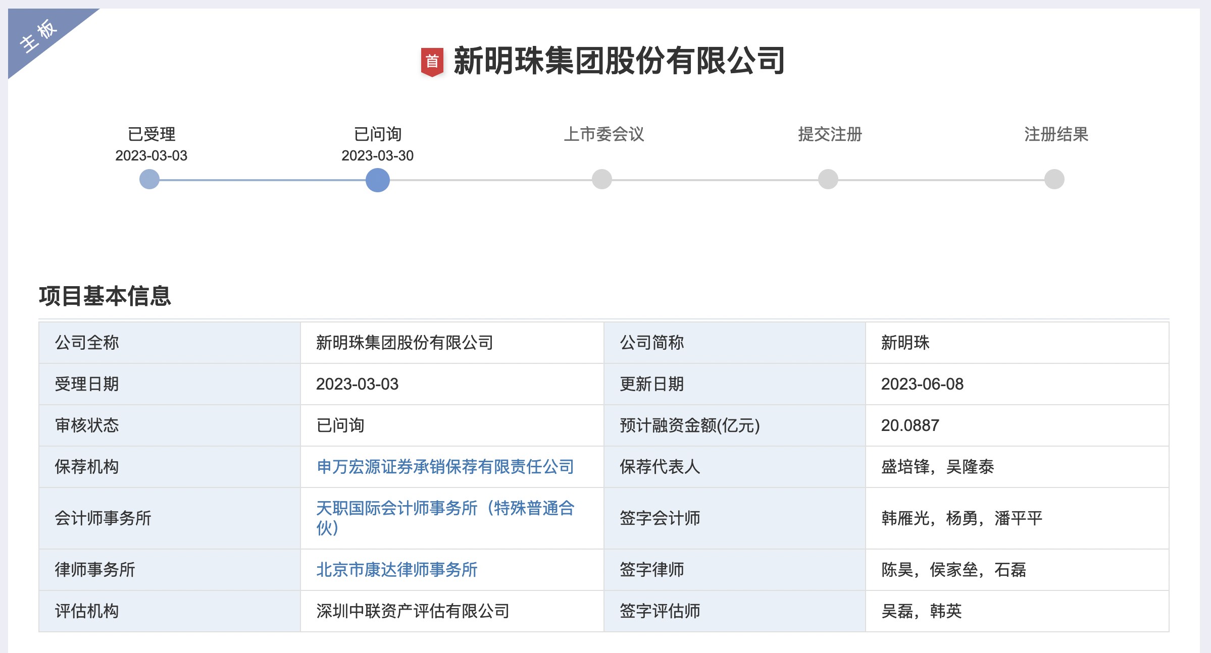 如果是2019年10月协议开始生效,就意味着新明珠最晚需要在2023年10月完成上市,目前距离只剩下4个月,深交所官网显示其IPO动态仍停留在3月底的已问询中。