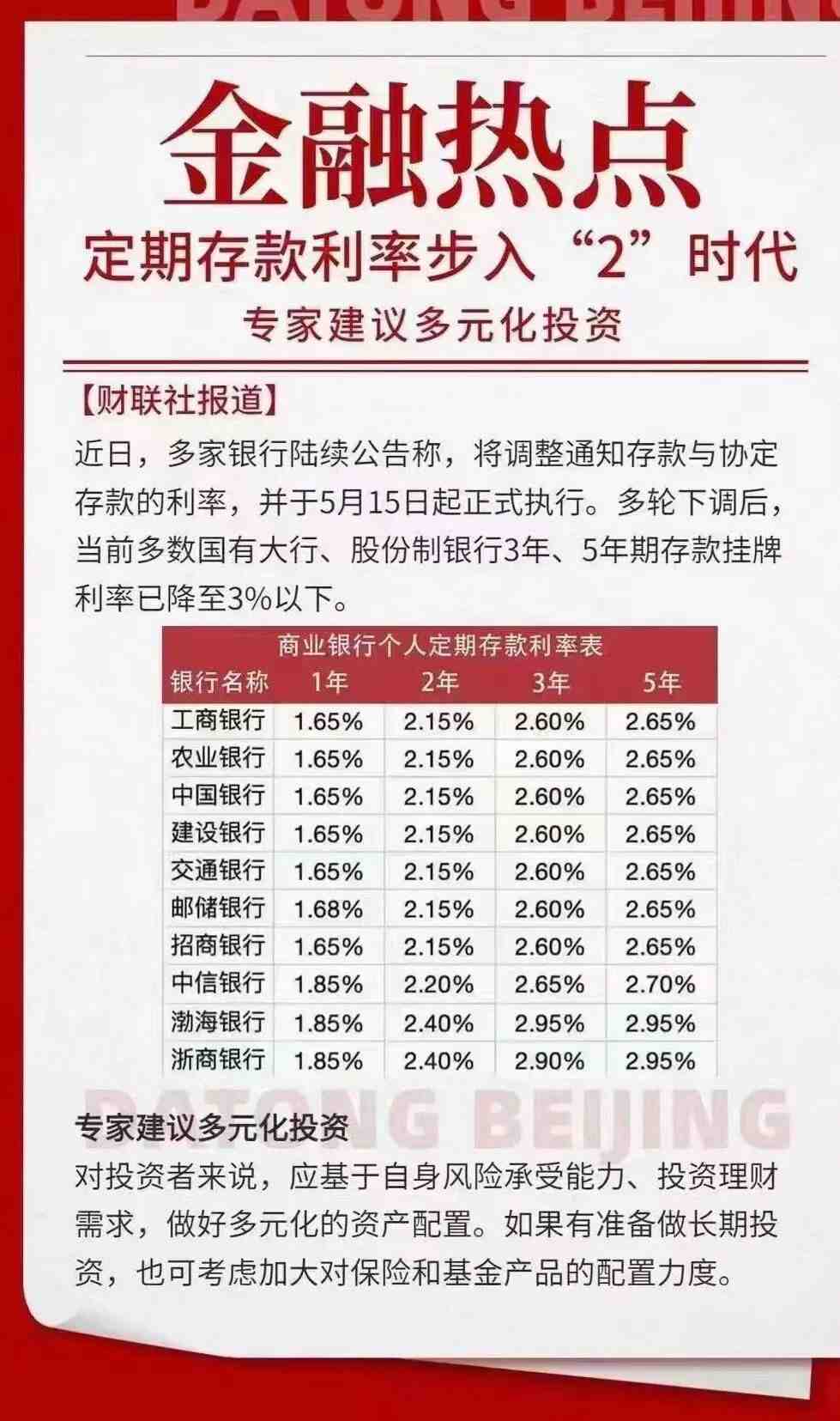 目前各个银行还有自己的浮动性上调,工行相对划算一点,三年利率在2.85%左右。五大银行外的银行,目前存款利率还没有降。