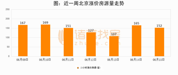 根据诸葛找房数据显示,北京24小时涨价房源量为152套,较06月14日减少13套,环比下降7.9%。与此同时,涨价房源占比小幅回落,对于购房者来说是一个入市窗口期,购房者可抓住时机入市。