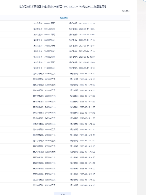 周五的三块地竞拍也很热闹,其中亦庄的X47竞争最为激烈,线下竞拍还未开始就已经在线上出价环节中触达了最高的上限价格,正式开拍时直接进入竞现房环节。