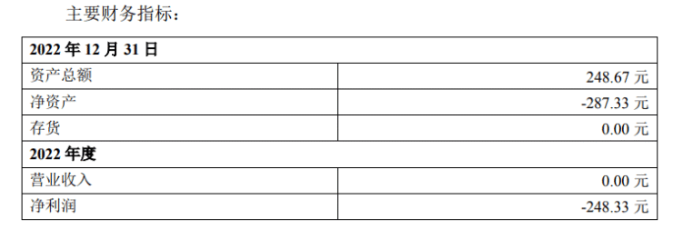 2022年营收为零!
